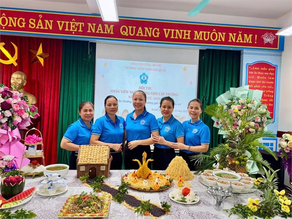 Cô cùng các bạn đồng nghiệp xây dựng thực đơn và chế biến những món ăn hấp dẫn, hợp khẩu vị để tổ chức tiệc Buffet cho trẻ